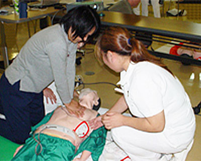 当院では平成18年10月より定期的にBLS講習会を開催しています。 地元大川消防署の救急救命士をはじめ当院インストラクター指導の下に職員を対象に延べ200名以上(平成20年7月現在)の受講終了者を輩出するまでに至りました。
