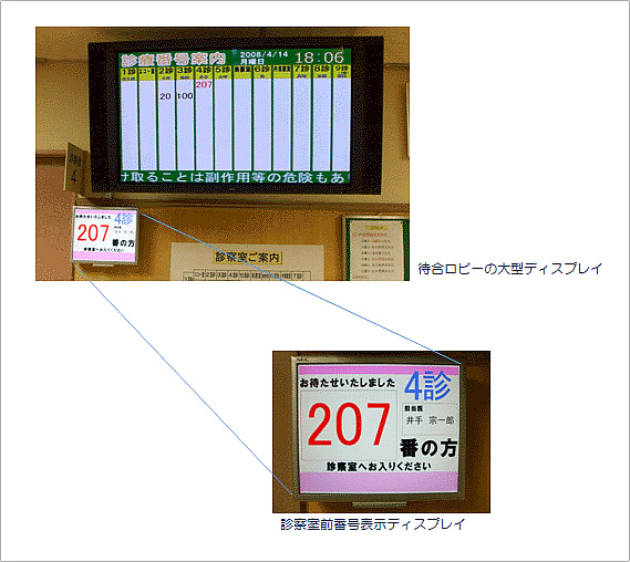 また、各診察室前でも順番の方の受付番号を表示しておりますので該当の診察室等へお入りください。