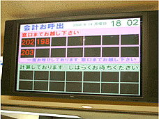 - 会計窓口上方にある大型ディスプレイに会計をお待ちの方の受付番号を表示致します。