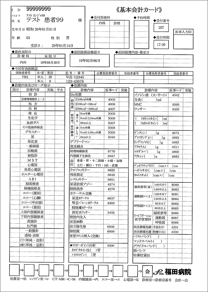 - 診察や検査が終わられましたら「基本会計カード」を会計窓口にお出しになり、お待ちください。