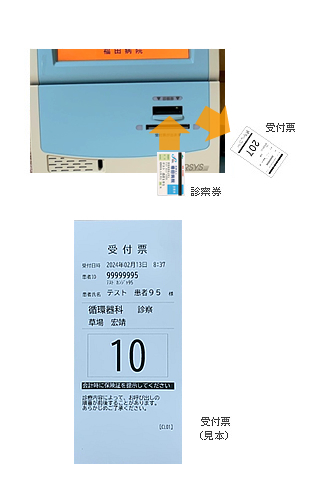 診察券を挿入し、操作終了後、本日の受付票が発行されます。